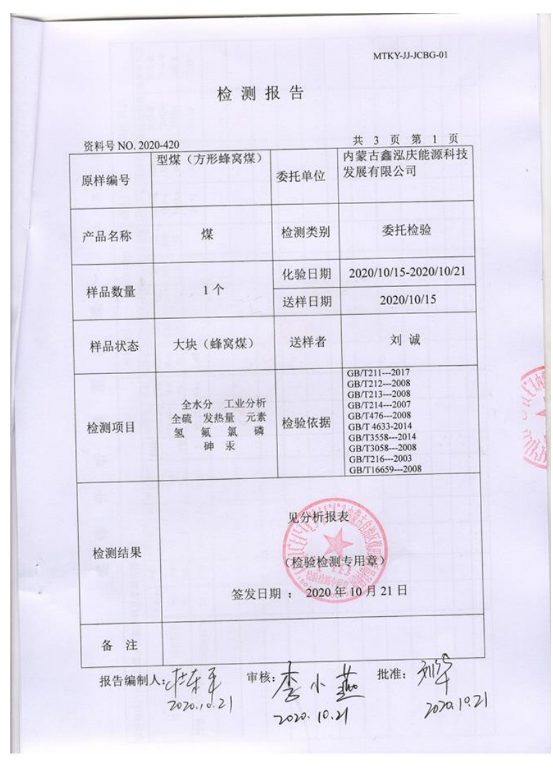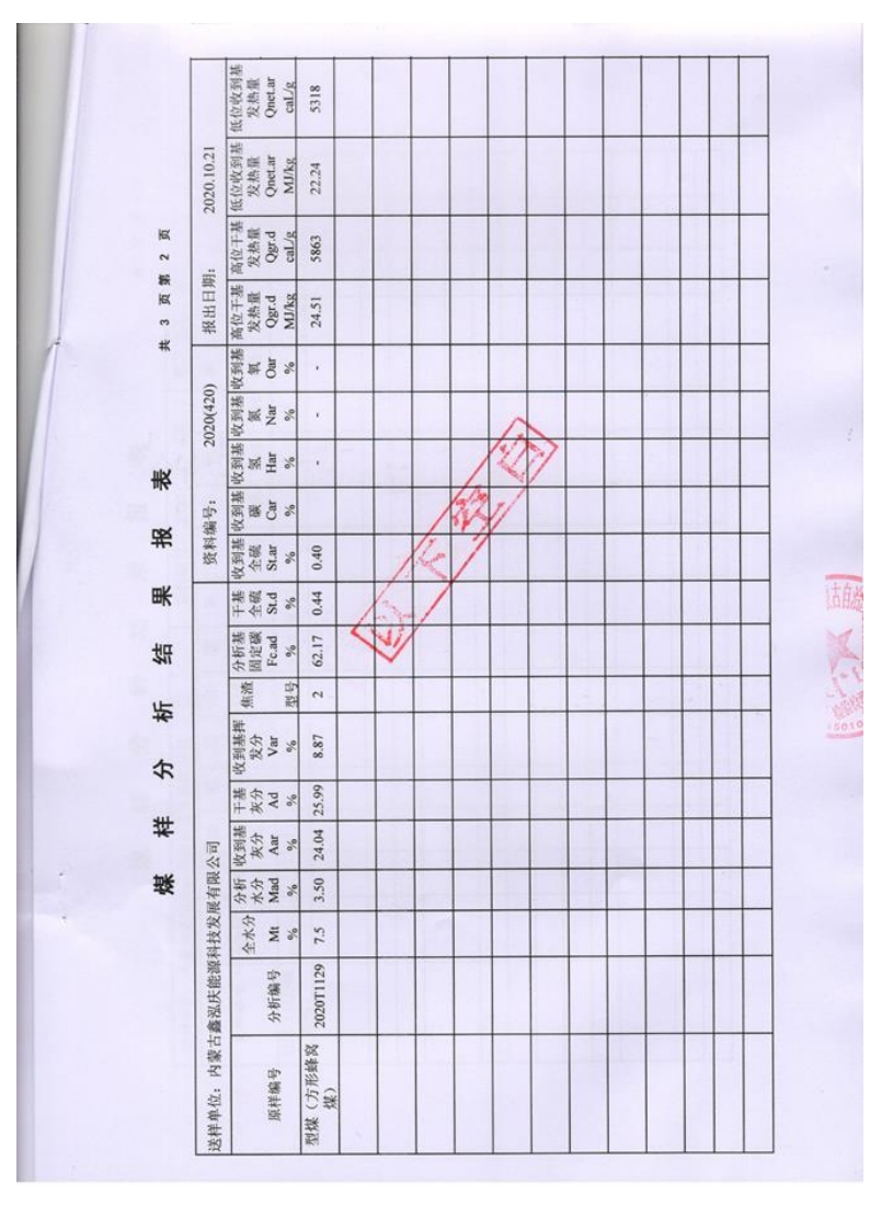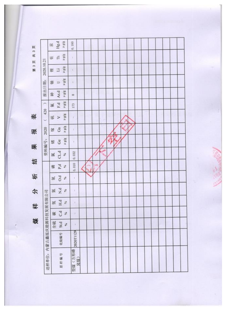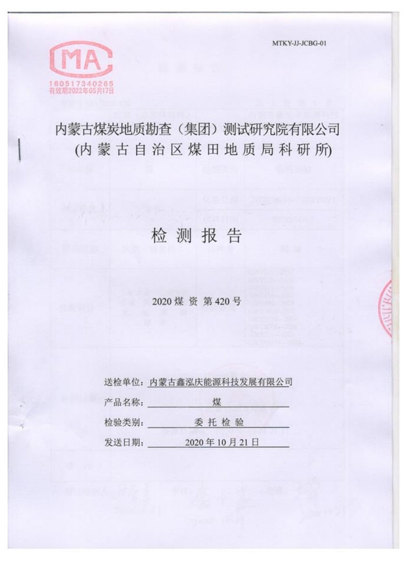 內(nèi)蒙古地質(zhì)勘查院煤質(zhì)檢測報告2020年