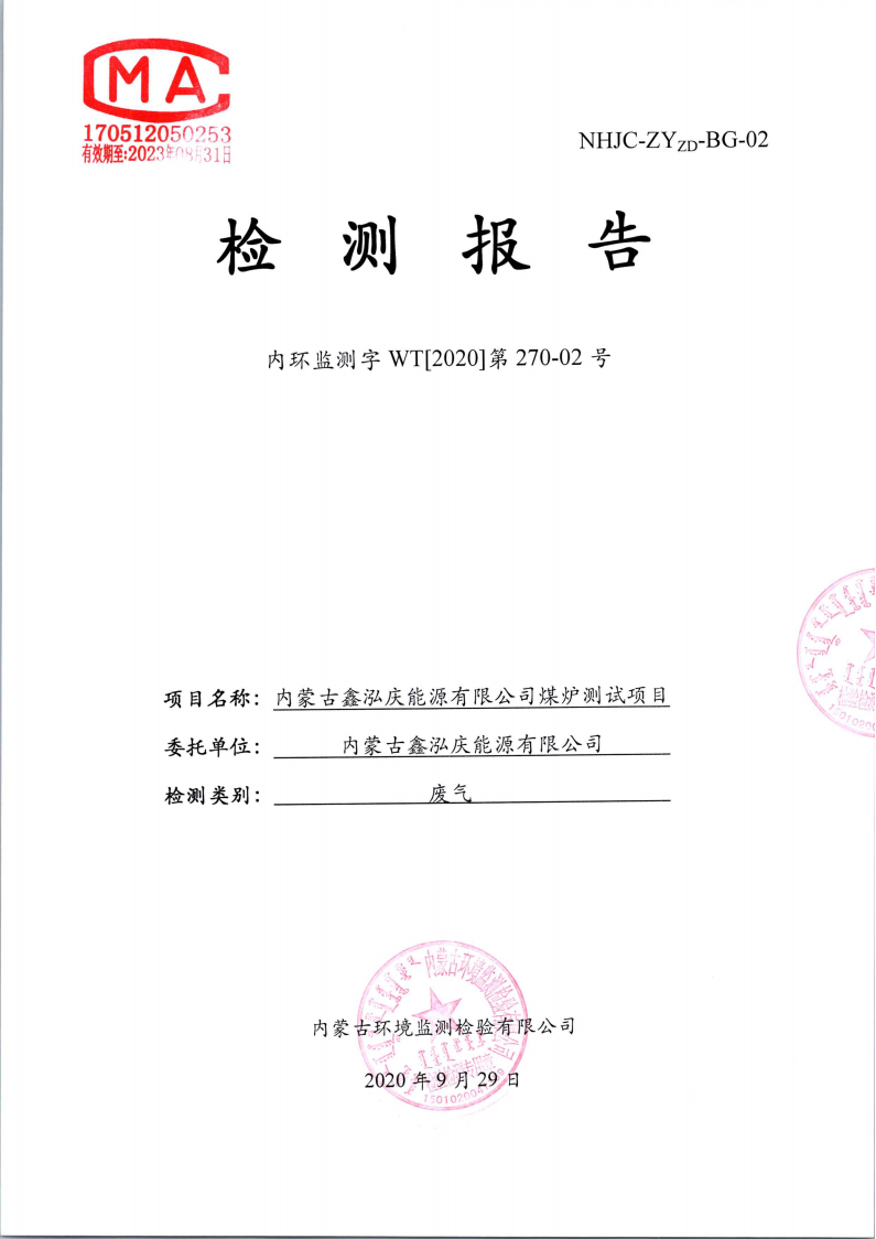 內(nèi)蒙古環(huán)境投資集團(tuán)檢測(cè)報(bào)告-低成本型煤廢氣檢測(cè)報(bào)告(干燒、水暖)