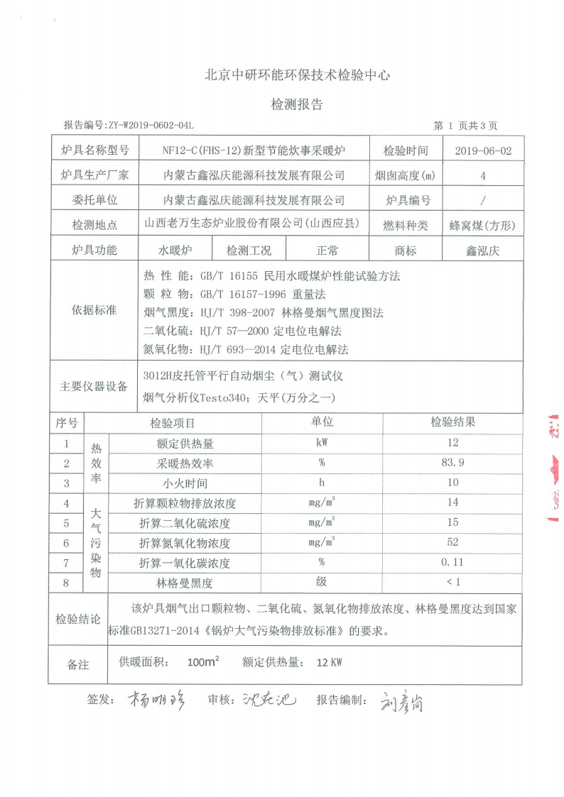 北京中研環(huán)能19年檢測(cè)報(bào)告,熱效83.9%